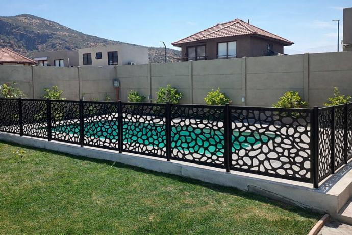 Solución innovadora y segura para delimitar el área de la piscina, cumpliendo una función protectora sin perder visibilidad ni diseño. Su integración con paneles decorativos permite mantener una estética armónica con el entorno.